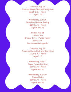 A complete list of children’s programs can be found on our Facebook page!